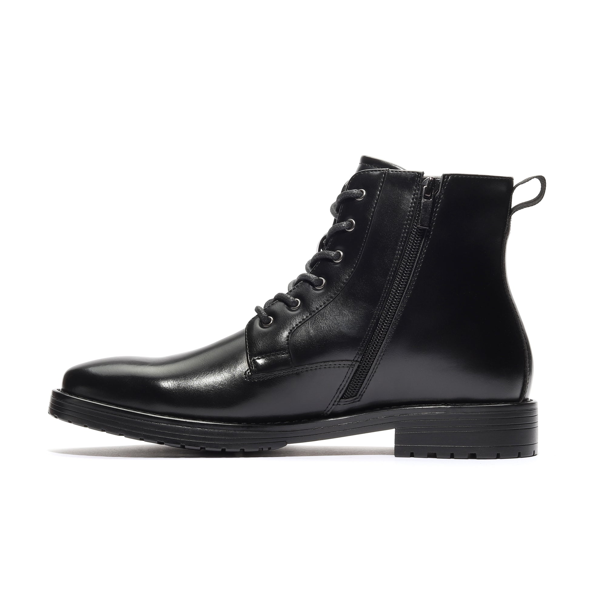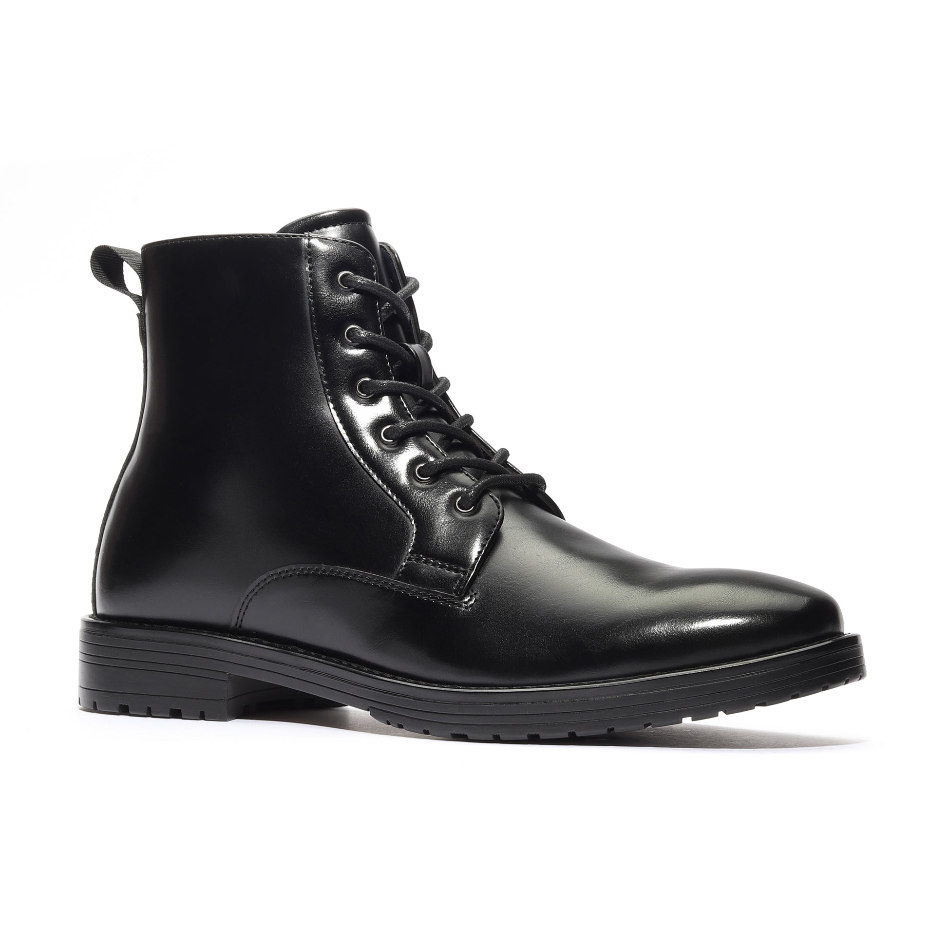 - Classic Combat boot Plain-Toe design with a sleek, soft-grain leather upper